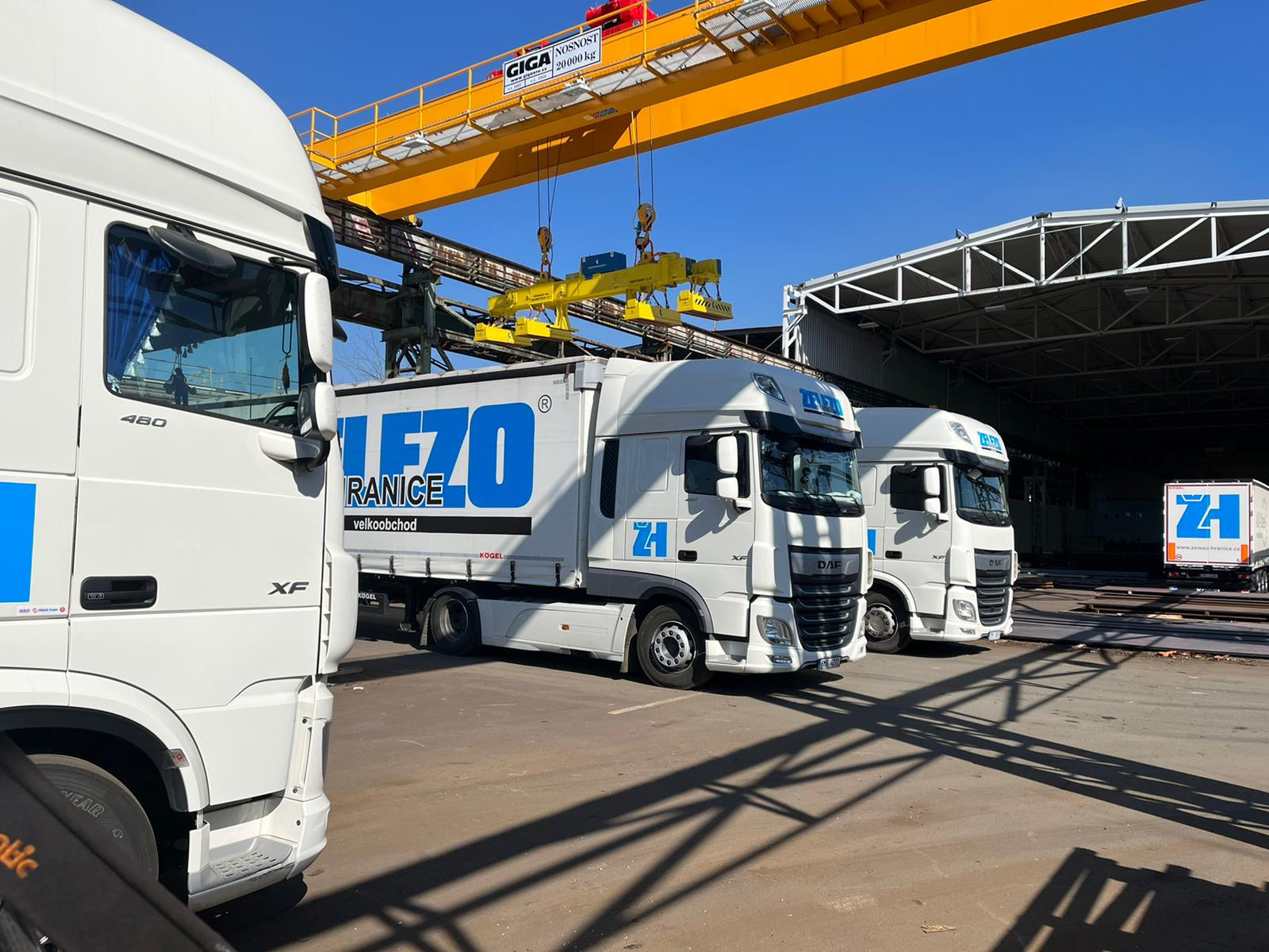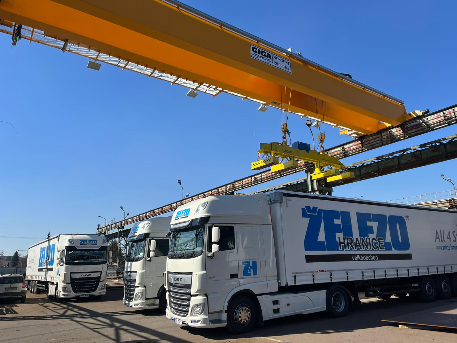 Na našem skladě v Ostravě máme zcela nový 20-ti tunový dvounosníkový mostový jeřáb od společnosti GIGA, na kterém máme novou magnetickou teleskopickou traverzu o nosnosti 15t.